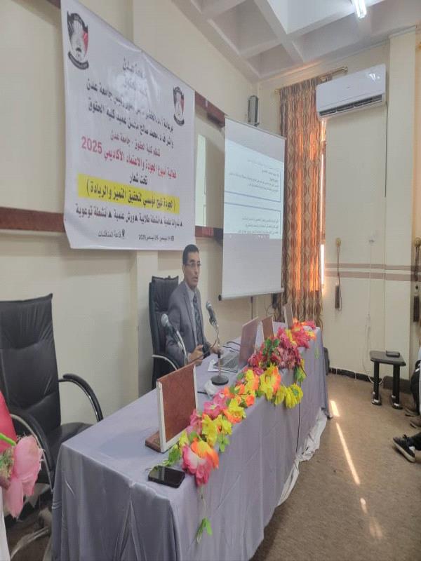 اختتم أسبوع الجودة العالمي بكلية الحقوق - جامعة عدن - صباحَ اليوم الأربعاء الموافق: