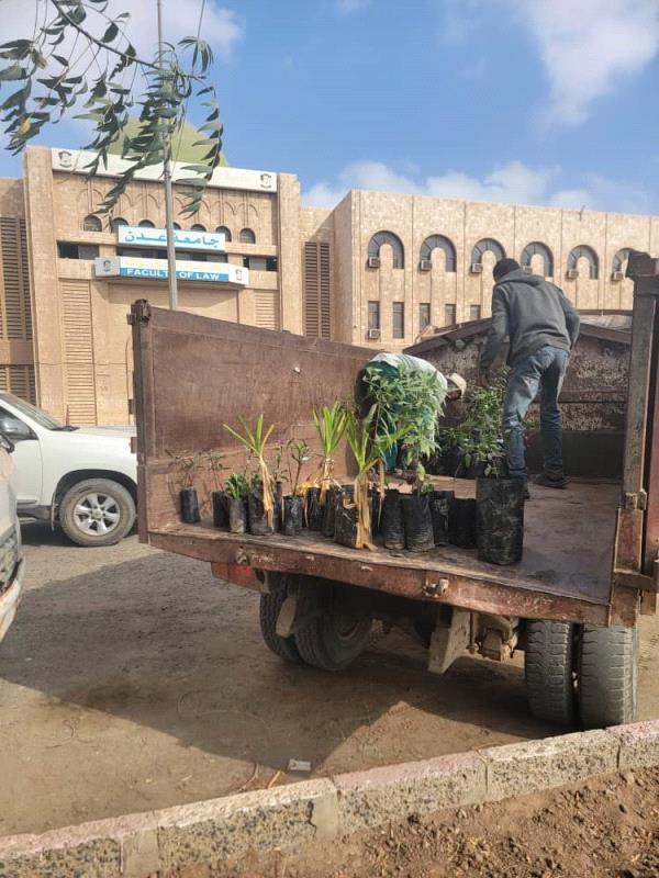 تسلمت كلية الحقوق شتلات زراعية من صندوق النظافة وتحسين المدينة في م/ عدن ، بدعم من نائب رئيس الصندوق المهندس سالمين علوي لغرسها في المساحة الزراعية بالكلية ، وذلك بعد أن تم تعميق البئر في الكلية ، وتحسن نوعية الماء وانخفاض نسبة الملوحة بشكل كبير ، والتي سببت في السابق ضرراً كبيراً بالأشجار والزهور ، وأدى إلى إتلاف غالبيتها.
